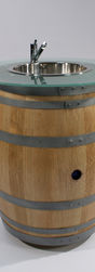 Un tonneau avec évier autonome en eau et Energie. Parfait pour déguster les vins et rincer les verres. Sur roulettes, avec plateau verre trempé dépoli acide. Batterie et chargeur, 2 jerricans de 20 litres. Allumage Leds dès l'ouverture du robinet.